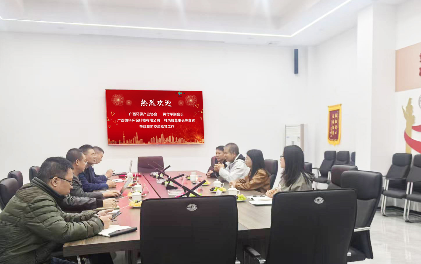 ?? ? ?2025年12月8日廣西環(huán)保產(chǎn)業(yè)協(xié)會黃付平副會長、廣西微科環(huán)??萍加邢薰玖直宥麻L等貴賓一行,專程蒞臨浙江川寧環(huán)保科技有限公司交流指導。? ? ? ?